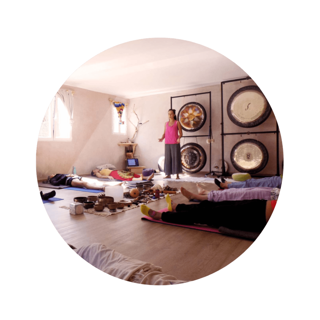 Sesión grupal durante 1 hora y media, donde experimentamos el sonido de los Gong y otros instrumentos.
